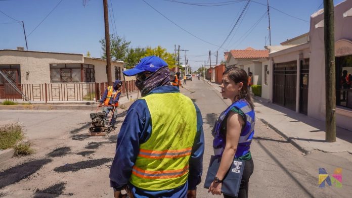 Meoqui.- “Continuamos con la Campaña Permanente de Bacheo en todo el municipio, sepan que trabajamos en equipo y que es muy importante la participación de la ciudadanía para lograr esto”, expresó la alcaldesa Miriam Soto luego de supervisar los trabajos de bacheo en la calle Allende del municipio de Meoqui.