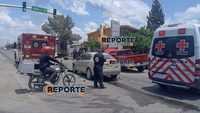 Delicias.- Un fuerte accidente ocurrió este medio día en el que participó una camioneta tipo pickup y un automóvil tipo sedan, por fortuna solo hubo daños materiales.