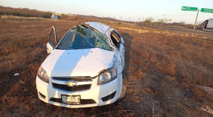 Chihuahua.- Un Aveo blanco en el cual viajaban dos mujeres chihuahuenses volcó antes de llegar a Mazatlán (Sinaloa). Una murió y la otra terminó herida.
