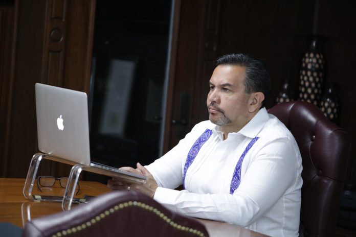 Ciudad Juárez.- El Presidente Municipal, Cruz Pérez Cuéllar, participó hoy en un diálogo, a través de una plataforma digital, con Rosa Isela Rodríguez Velázquez, titular de la Secretaria de Seguridad y Protección Ciudadana del Gobierno Federal y con representantes de 15 municipios de distintas regiones del país con atención prioritaria en temas de seguridad.
