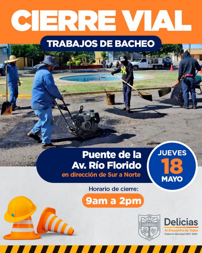 Delicias.- Con la finalidad de mejorar el paso vehicular sobre las avenidas de la ciudad, Alfonso Rodríguez, director de Obras Públicas Delicias, anunció que el jueves 18 de mayo se reanudará la rehabilitación del puente de la Río Florido.
