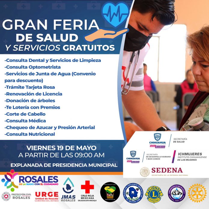 Rosales.- Por parte del alcalde del municipio de Rosales, el C.P. Marcial Márquez, se hizo la extensa invitación a la ciudadanía a asistir a la Gran Feria de Salud y Servicios, que se realizará en conjunto con la Secretaría de Desarrollo Humano y Bien Común de Gobierno del Estado, la SEDENA, COESVI, asociaciones civiles, y otras dependencias municipales.