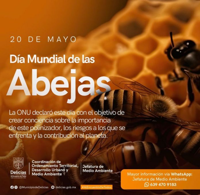 Delicias.- En conmemoración al Día Mundial de las Abejas, fecha que la ONU instituyó para resaltar la importancia de estos polinizadores, Juan Carlos Torrecillas, jefe de Medio Ambiente, emprendió una serie de actividades de concientización ambiental.