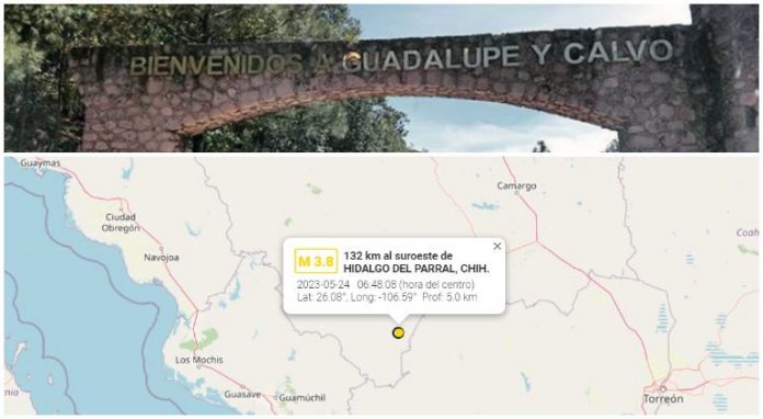 Específicamente, el sismo se dio a las 6:48 a.m. del miércoles con una miagnitud de 3.8º, en la latitud 26.08º y longitud -106.59º, a una profundidad de cinco kilómetros, lo que es muy superficial.