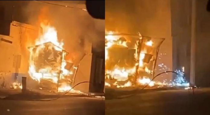 En las imágenes compartidas a tiempo.com.mx, se observa como el fuego se propagó por todo el puesto. Cuando este se consumió y el fuego continuaba, fue visible un cortocircuito junto al mismo. Este pudo haber originado el fuego.
