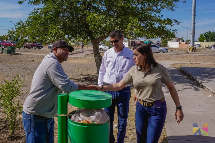 La alcaldesa de Meoqui supervisó los trabajos de limpieza y rehabilitación en la plaza de la colonia Sicomoros.