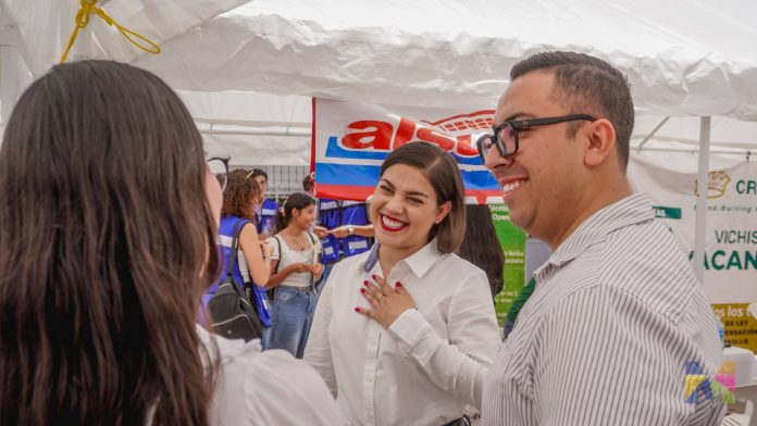 Fue en la explanada de Presidencia Municipal donde se instalaron 12 empresas de Meoqui y la región, las cuales ofertaron más de 500 vacantes de todos los niveles, así lo compartió Alan Mata, director de Desarrollo Económico y Turismo de Meoqui; a su vez, Lisandra Legarreta, Consejera Representante de la Cámara Nacional de Comercio(CANACO) en Meoqui, precisó: “Muy buena respuesta por parte de los habitantes de la región, esto ayuda a impulsar la economía de las familias”.