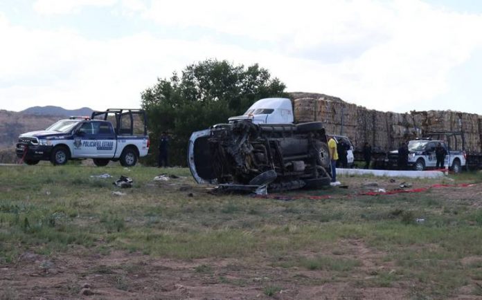 Fue en a la altura del kilómetro 84 de la carretera de Ciudad Juárez a la ciudad de Chihuahua, en donde el mando de la Secretaría de Seguridad Pública Estatal, sufrió la volcadura, que dejó varias personas lesionadas y dos personas fallecidas.