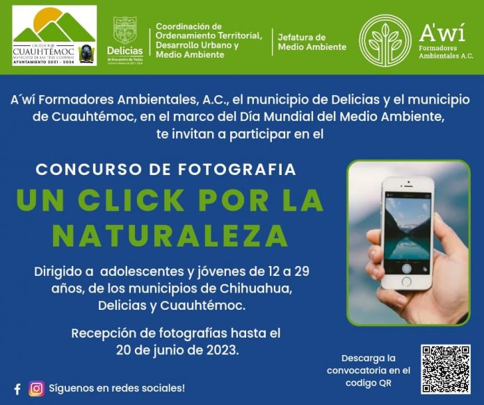 Delicias.- Como parte de las actividades de la semana del Medio Ambiente, Jorge Ramírez, director de Desarrollo Urbano, lanzó la convocatoria “Un click por la naturaleza”, concurso fotográfico para jóvenes delicienses de entre 12 y 29 años.
