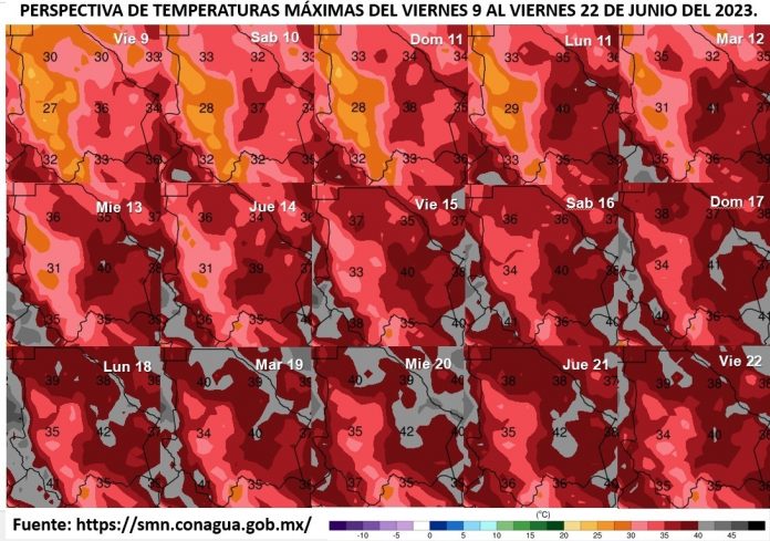 – Se prevé que Ojinaga alcance los 42 grados centígrados, Ciudad Juárez 40°C y Chihuahua capital 39°C