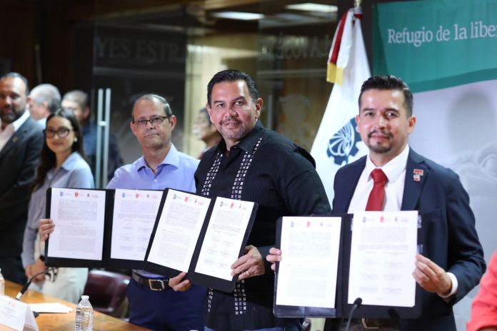 El evento donde se signó el acuerdo se llevó a cabo en la sala José Reyes Estrada, de la Unidad Administrativa “Lic. Benito Juárez”, encabezado por el Presidente Municipal, Cruz Pérez Cuéllar.