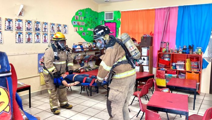 Saucillo.- El día de hoy, la dirección de Seguridad Pública, a través del departamento de Protección Civil, llevó a cabo un exitoso simulacro en el jardín de niños “Manuel Gutiérrez Nájera”. El objetivo principal de esta actividad fue poner a prueba los protocolos de respuesta y evacuación en caso de un accidente con una persona lesionada por quemaduras.
