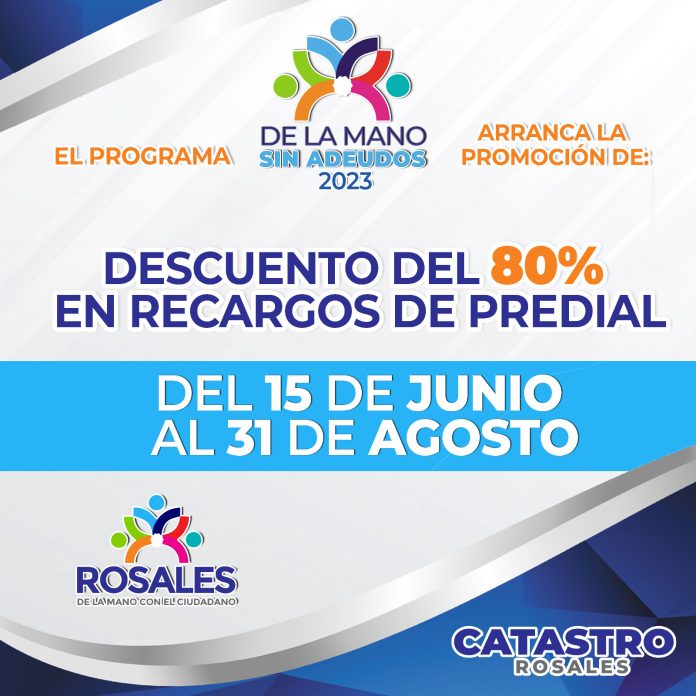 El objetivo del programa De la Mano Sin Adeudos es que las familias de Rosales tengan la oportunidad para regularizar sus cuentas de predial, por lo que se invita a que aprovechen este importante beneficio.