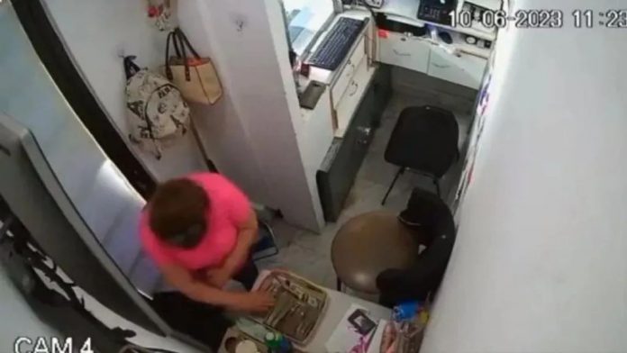 En otro momento del video se puede apreciar a la mujer a punto de ser sorprendida por la gerente del establecimiento, pero logra disimular el delito y salir adelante con el robo.