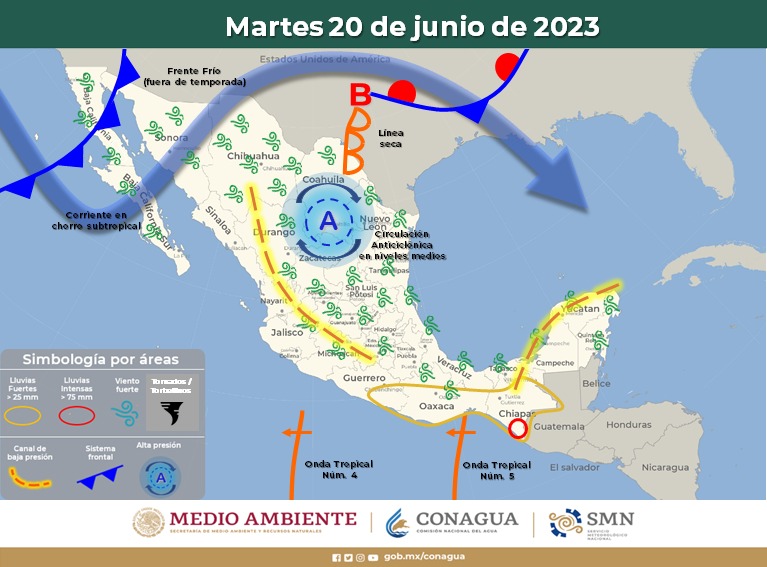 Con base en la información emitida por el Servicio Meteorológico Nacional, la CEPC indicó que, debido a una circulación anticiclónica en niveles medios de la atmósfera, se mantendrá la tercera onda de calor sobre el estado, donde se pronostican temperaturas entre los 35 y 40 grados centígrados (°C) en municipios del norte, centro, sur, noreste y sureste.