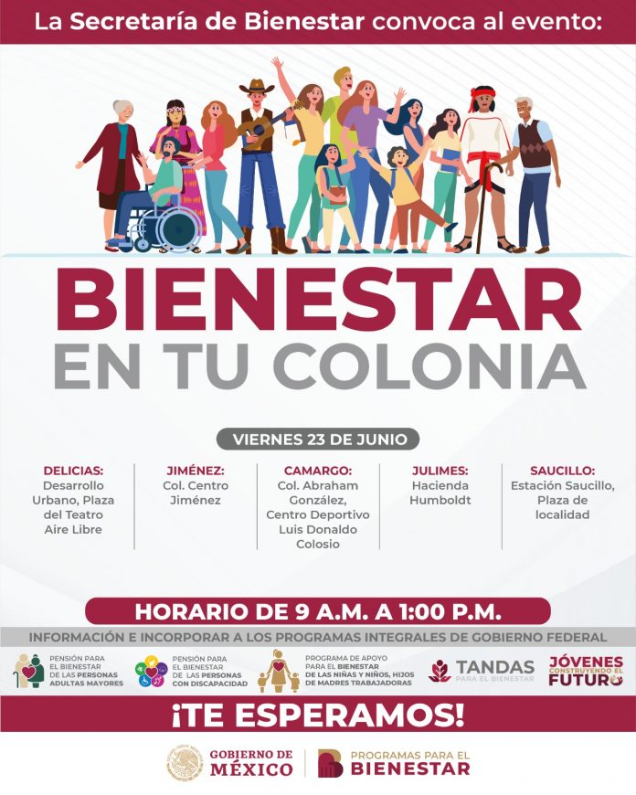 Delicias.- La delegación regional de la Secretaría de Bienestar por parte de la estrategia de trabajo “Territorio no Escritorio”, dará atención a las y los beneficiarios de los programas sociales en los módulos de atención en “Bienestar en tu Colonia”.