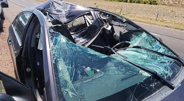 EE.UU.- Elementos de la Patrulla Fronteriza dieron primeros auxilios a un vehículo que fue aplastado por la llanta de un remolque en la I-10, cerca de Van Horn (Texas).