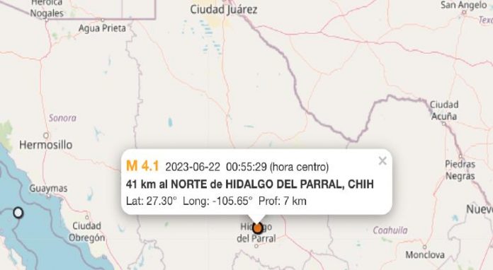 Parral.- Esta madrugada un sismo con magnitud de 4.1 se registró en la región al sur del Estado de Chihuahua.
