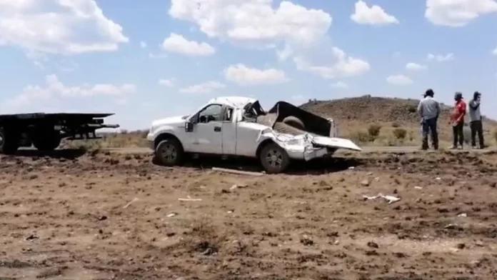 Personal de la Guardia Nacional división carretera, atendió el reporte, quienes al acudir localizaron una camioneta pickup marca Ford, línea F-150, color blanca, modelo aproximado 2006, la cual estaba volcada en la parte central entre las dos carreteras.