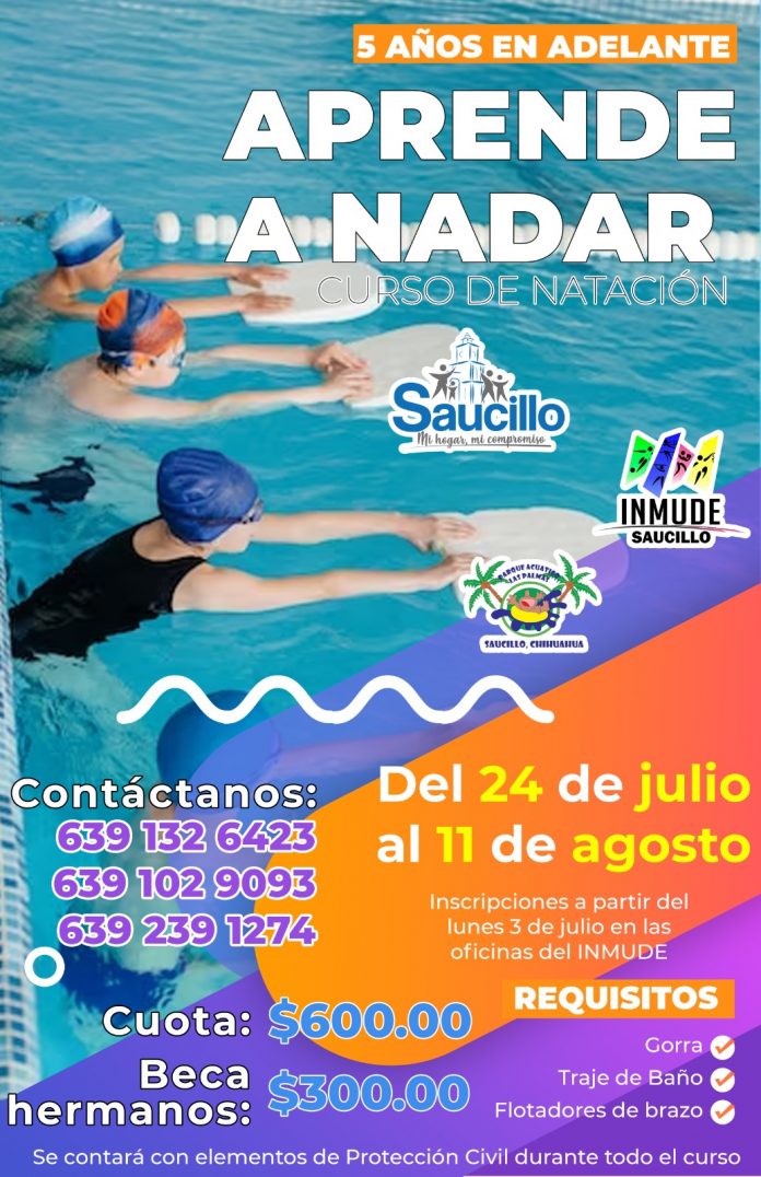 Saucillo.- La Alcaldesa de Saucillo, Aidé López De Anda, invita a toda la ciudadanía a inscribirse en los Cursos de Natación “Aprende a Nadar”, dirigidos a personas a partir de los 5 años de edad en adelante. Estas clases representan una excelente oportunidad para adquirir habilidades acuáticas y disfrutar de los beneficios que ofrece la natación.