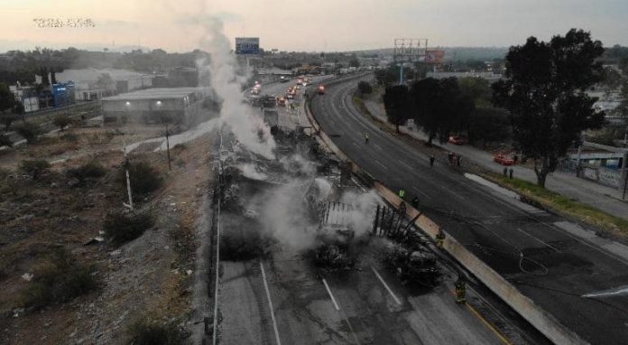 México.- La madrugada de este miércoles, carambola de unidades pesadas cerró la autopista México-Querétaro, estallaron en llamas y se consumieron.
