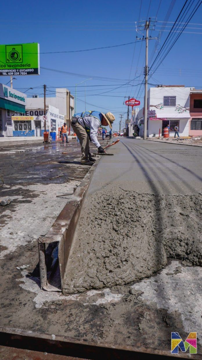 Avanzan para culminar trabajos en guarniciones, banquetas y el cuerpo central de la vialidad