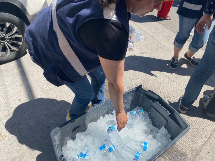La funcionaria de la SDHyBC indicó que la brigada se encuentra distribuyendo mil botellas de agua y 500 sueros fríos a los adultos mayores para que se mantengan hidratados, además de llevarles varias carpas para resguardarlos del sol.