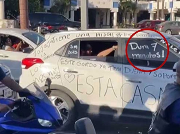 De acuerdo a los internautas, el vehículo fue captado sobre la Av. Camarón Sábalo, ubicada en el puerto mazatleco y mientras se encontraba en el camino, varias personas, motocicletas e incluso otros coches se detuvieron para poder ver y leer las frases que la mujer le había dejado como señal de venganza.