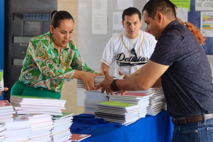 Delicias.- Este sábado Alma Limas de Valenciano, Presidenta del DIF Delicias, agradeció al Centro de Estudios de Bachillerato 6/4 (CEB 6/4), mejor conocido como el Pedagógico, por sumarse a la campaña de “Útiles que son útiles”, con mil 223 cuadernos.