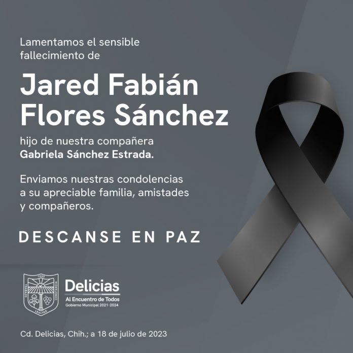 Delicias.- Alejandro Badía, director de Servicios Públicos Municipales, informó sobre el lamentable fallecimiento del compañero Jared Fabián Flores Sánchez, hijo de Gabriela Sánchez Estrada, trabajadora del municipio.