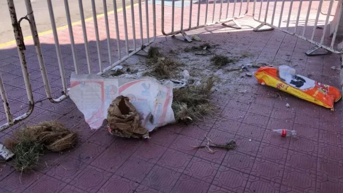 Fue la tarde de este lunes, cuando un hombre que dijo tener su domicilio en la calle 80ª y Santos Fierro de la colonia Cerro de la Cruz, arrojó dos costales de escombro y hierba seca en la banqueta frente al palacio de gobierno.