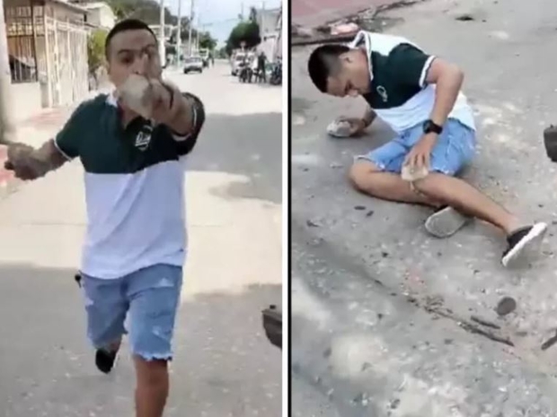 En Barranquilla, un incidente violento ha causado controversia y debate en la sociedad. Un hombre fue captado en video intentando agredir a un policía con dos piedras, un acto que terminó con él recibiendo dos disparos.