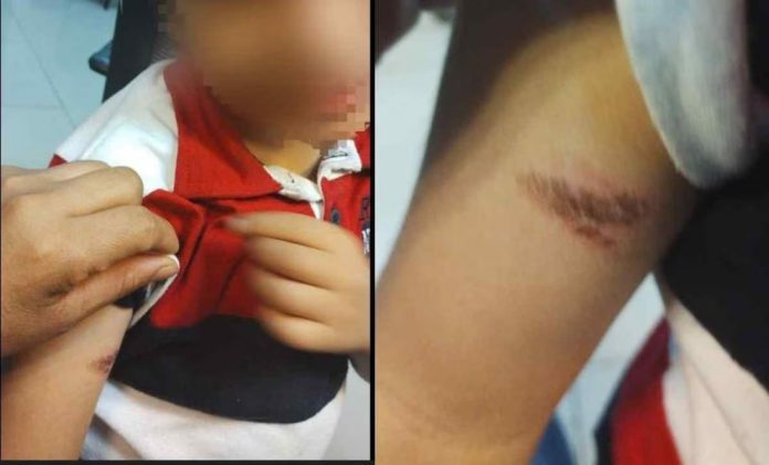 La lesión en el brazo del niño presenta ya una especie de costra y fue documentado por sus familiares, quienes las dieron a conocer este miércoles 19 de julio.