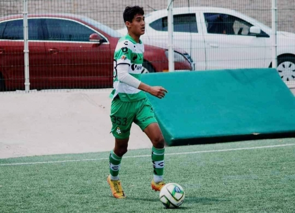 Este joven, orgullo de Delicias, tiene ya un año con las fuerzas básicas de Santos Laguna, ahora en la categoría Sub-15.