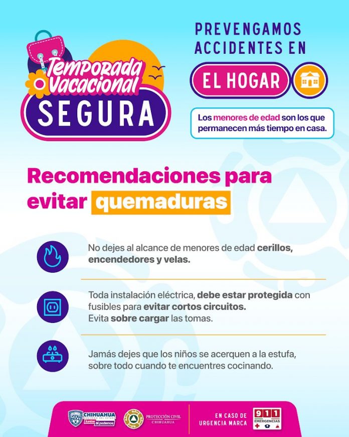 Chihuahua.- Para este periodo vacacional, la Coordinación Estatal de Protección Civil emite una serie de recomendaciones para la prevención de accidentes en casa.