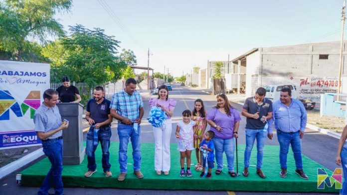Meoqui.- “No tuvimos que pagar nada por la pavimentación y ahora tenemos una calle bonita, limpia y segura para nosotros, agradecemos a la alcaldesa porque se preocupa por las necesidades de la comunidad”, expresó Claudia Orozco, habitante de la comunidad de Guadalupe Victoria, luego de que la alcaldesa de Meoqui Miriam Soto hizo entrega de la pavimentación de la Calle Porfirio Díaz.