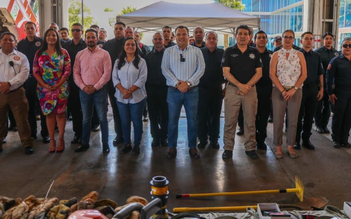 Delicias.- Como resultado de la gestión del departamento de Bomberos Delicias, hecha a las ciudades de Bernalillo y Santa Fe, Nuevo México, y Odessa, Texas, se consiguió un paquete completo de herramientas e insumos, mismo que el Presidente Municipal, Jesús Valenciano, entregó este viernes.