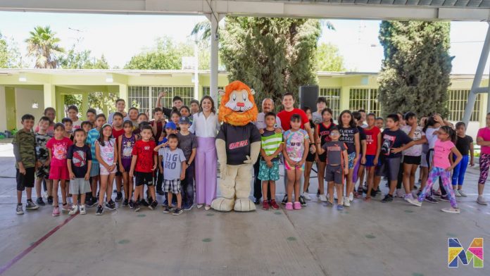 Meoqui.- “Queremos que los niños y niñas meoquenses sigan creciendo, desarrollándose de la mejor manera, preparándose y disfrutando de esta gran etapa”, expresó la alcaldesa Miriam Soto al convivir más de 50 pequeños en el Curso de Verano 2023 de Meoqui, a cargo de los elementos de Seguridad Pública Municipal, quienes llevan a cabo las actividades en la Secundaria Técnica 39.