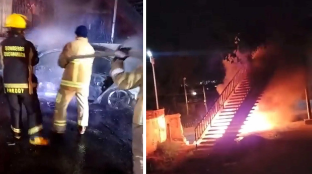 Imágenes compartidas en redes sociales muestran cómo el incendio consumió por completo el auto con los dos jóvenes dentro.