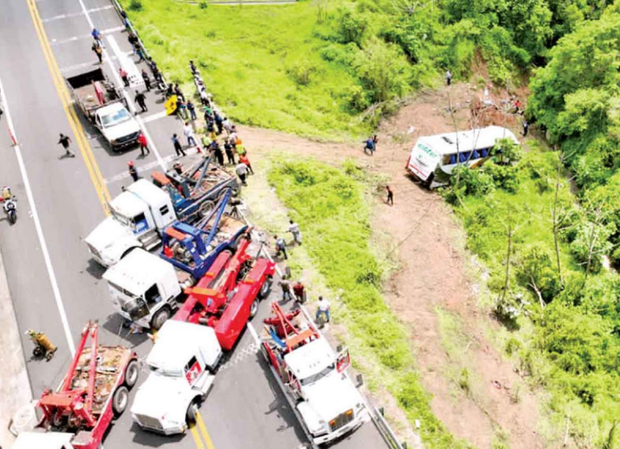 La unidad siniestrada de la marca Kenworth, modelo 1998, color blanco con rojo, placas de circulación 434DF9 del Servicio Público Federal, transportaba flores y en su caja viajaban aproximadamente 25 personas.