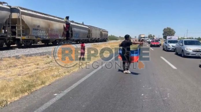 Delicias. – Por lo menos un millar de inmigrantes, la mayoría familias, bajaron del tren para solicitar apoyo a los automovilistas que transitaban por la carretera federal, sin dimensionar el peligro al que se exponía al tratarse de una vía rápida.