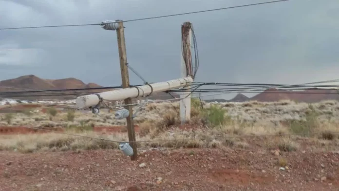 Chihuahua.- Durante la intensa lluvia que cayó la tarde de este jueves, un rayo cayó en las inmediaciones de la colonia Romanzza y derribó un poste de concreto.