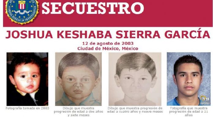El FBI compartió una serie de fotografías que muestran la progresión de Joshua, quien al día de hoy estaría por cumplir los 22 años de edad.