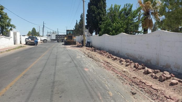 Meoqui.- Alrededor de 250 metros lineales de banqueta del Panteón Municipal de Meoqui serán reconstruidos con concreto hidráulico, así lo informó Ulises Escobar, director de Obras Públicas Municipales, quien compartió que se realizaron los trabajos de demolición para posteriormente continuar con el colado de guarniciones y banqueta.