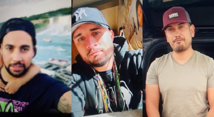 César Octavio Sánchez Luján, de 32 años. Viste pantalón de mezclilla azul y playera de cuello redondo color negro; Héctor Eduardo Hernández Orozco, de 31 años, quien viste camiseta de color verde, pantalón de mezclilla azul, botas tácticas color beige y gorra de color verde; así como Juan Carlos Márquez Rivas, de 33 años.