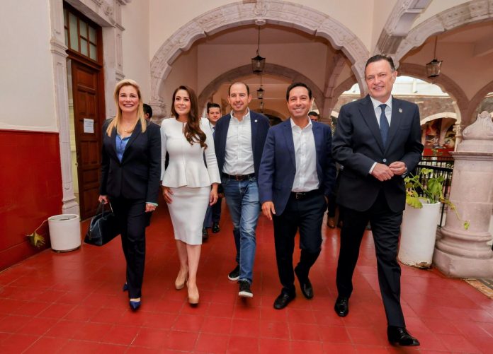Al término de la sesión plenaria, en la que participaron además los mandatarios de Guanajuato, Diego Sinhue; de Yucatán, Mauricio Vila y de Querétaro, Mauricio Kuri, se manifestaron en defensa del derecho a la educación de las niñas, niños y jóvenes.