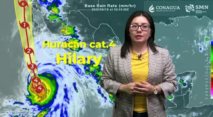 Explica Conagua que la “amplia circulación” del huracán Hilary que esta mañana se mantiene como categoría 4, “incrementará los efectos del Monzón Mexicano en el noroeste de México, le península de Baja California y el occidente del país”.