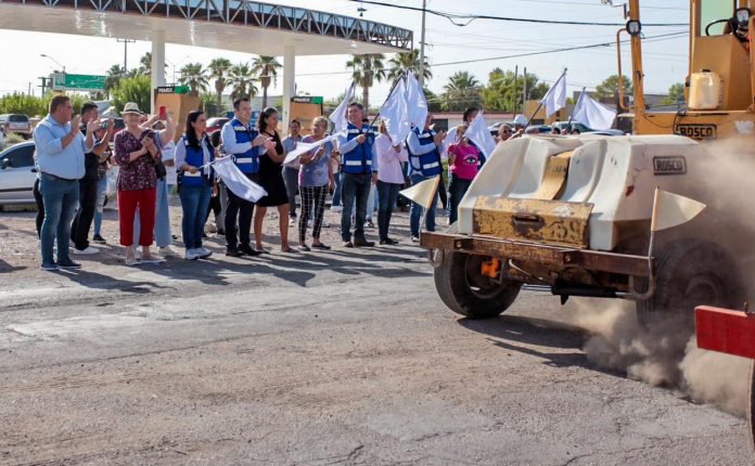 Delicias.- Como parte de las mejoras que se realizan en las vialidades de los diferentes sectores de Delicias, el Presidente Municipal, Jesús Valenciano, dio el banderazo de arranque de la obra de pavimentación en la avenida Samuel Guzmán, mejor conocida como “la de la Central de Abastos”.