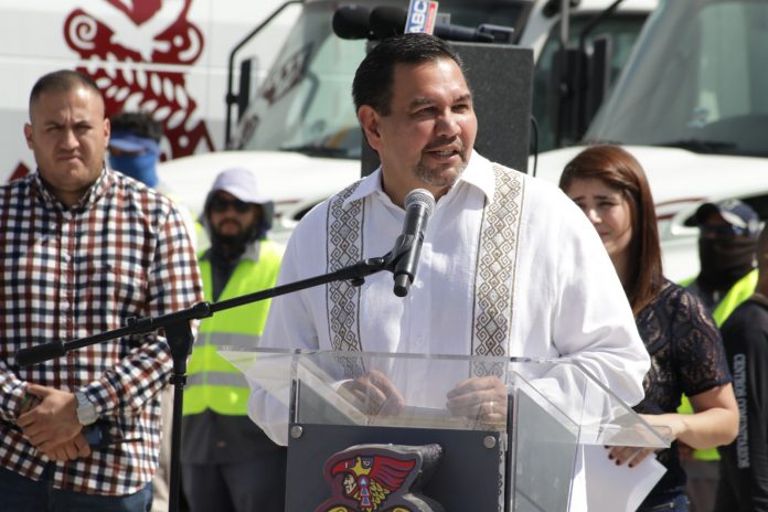 Gibran Solís Kanahan, director de Limpia, explicó que habrá 135 Camiones recolectores nuevos, cinco ligeros nuevos para mover contenedores de basura en las colonias, 10 más seminuevos, además de 100 contenedores para basura destinados a las colonias de la Zona 1.