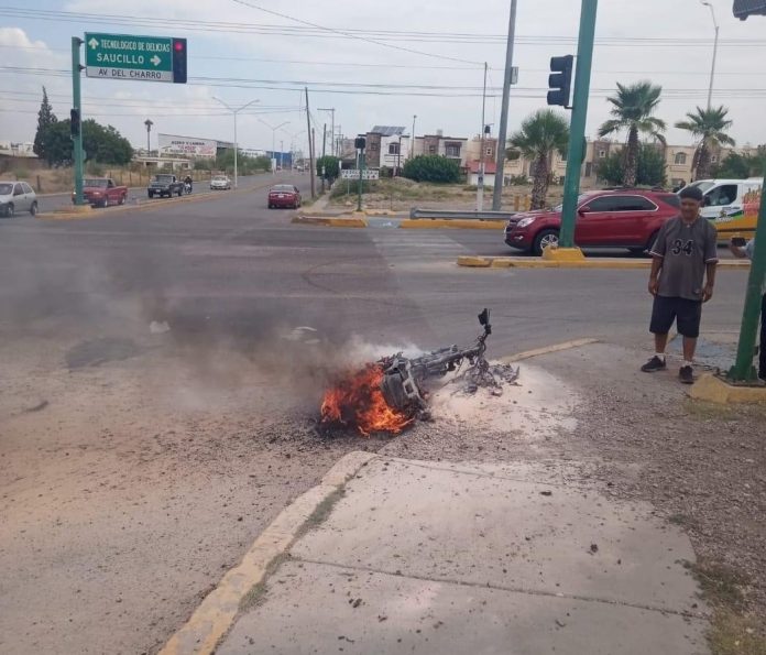 Delicias.- Un conductor de una motocicleta que conducia sobre la calzada del charro y solidaridad del sector oriente comenzó a incendiarse cuando la conducía sin causa alguna.